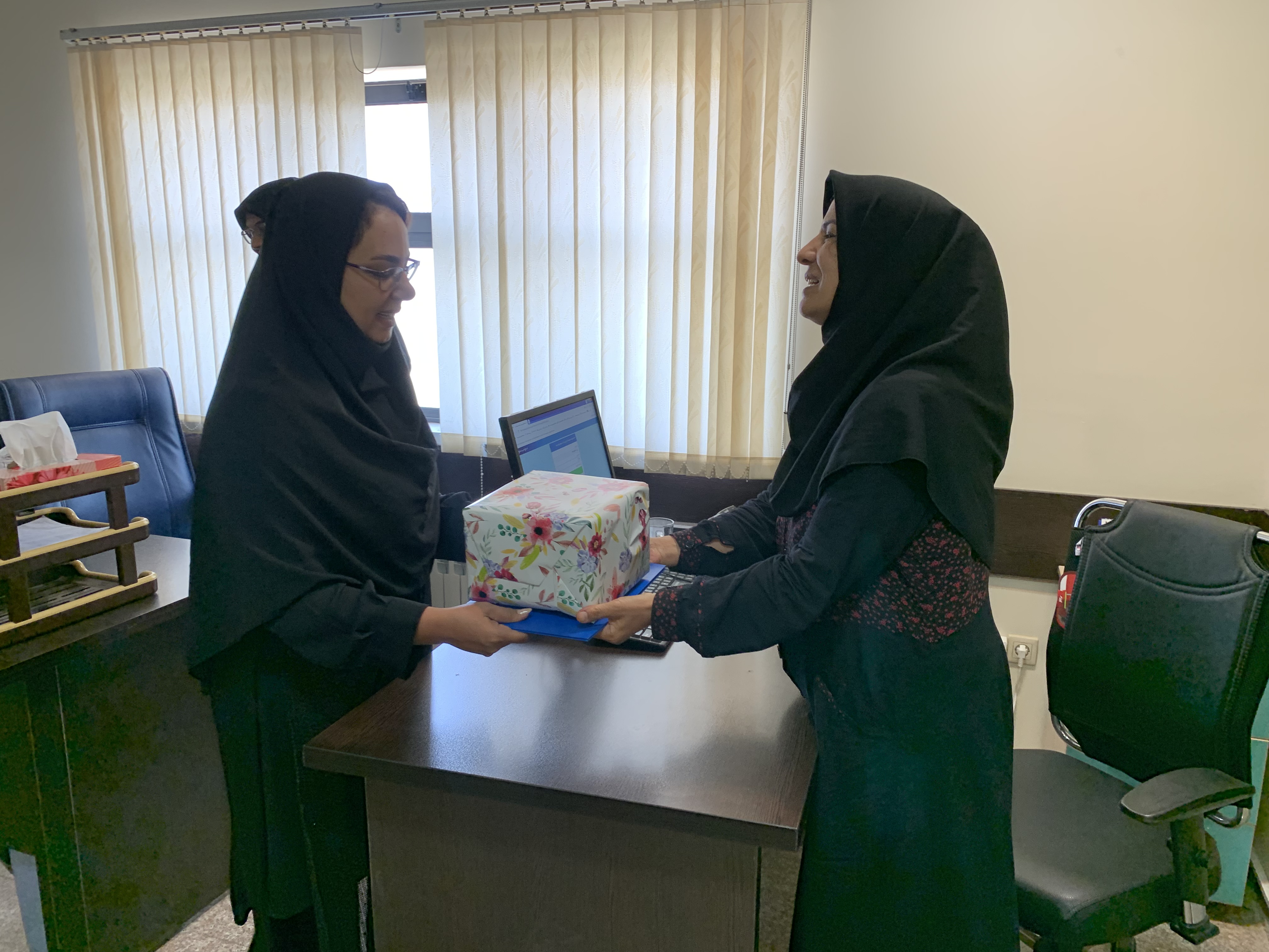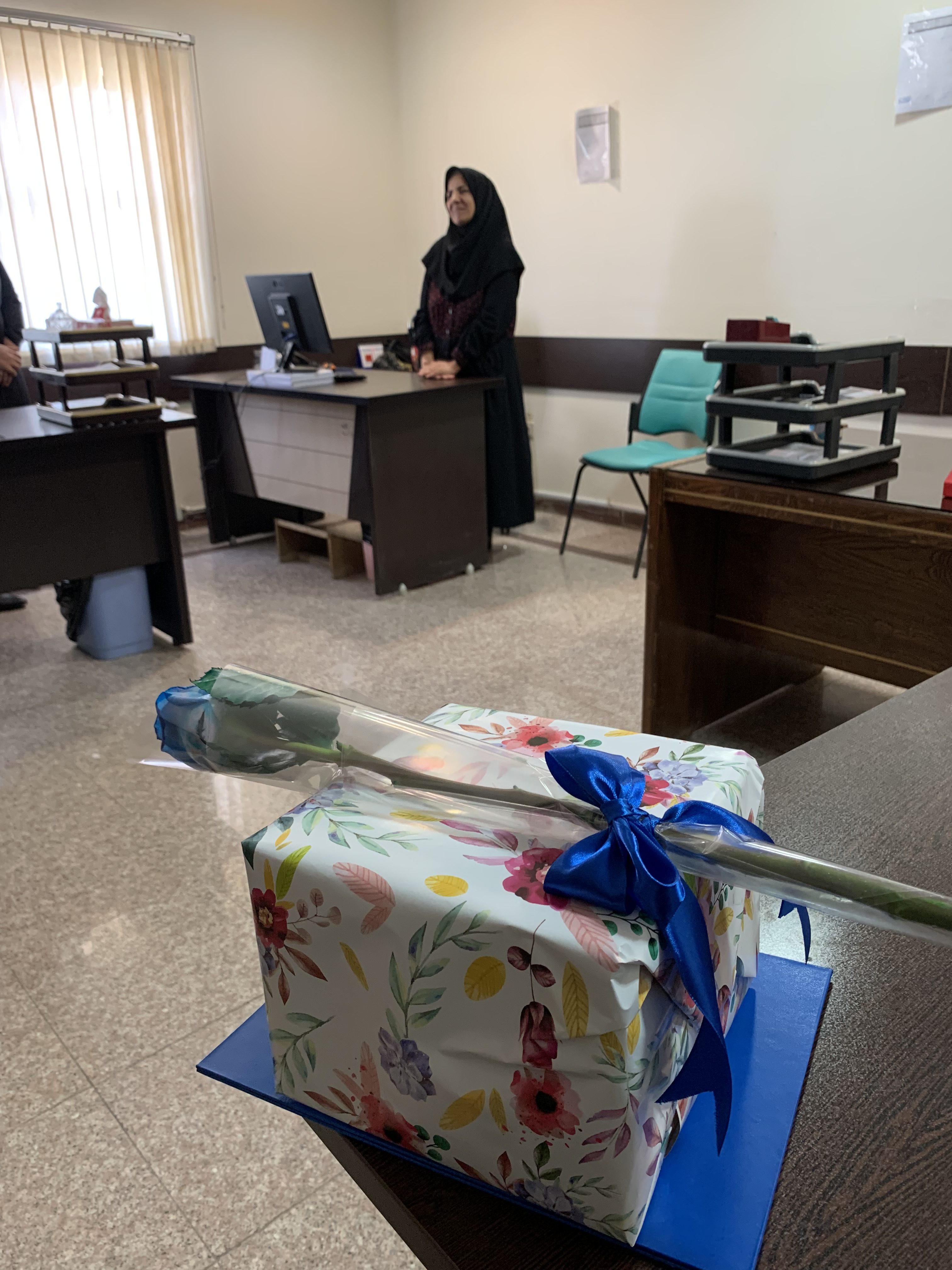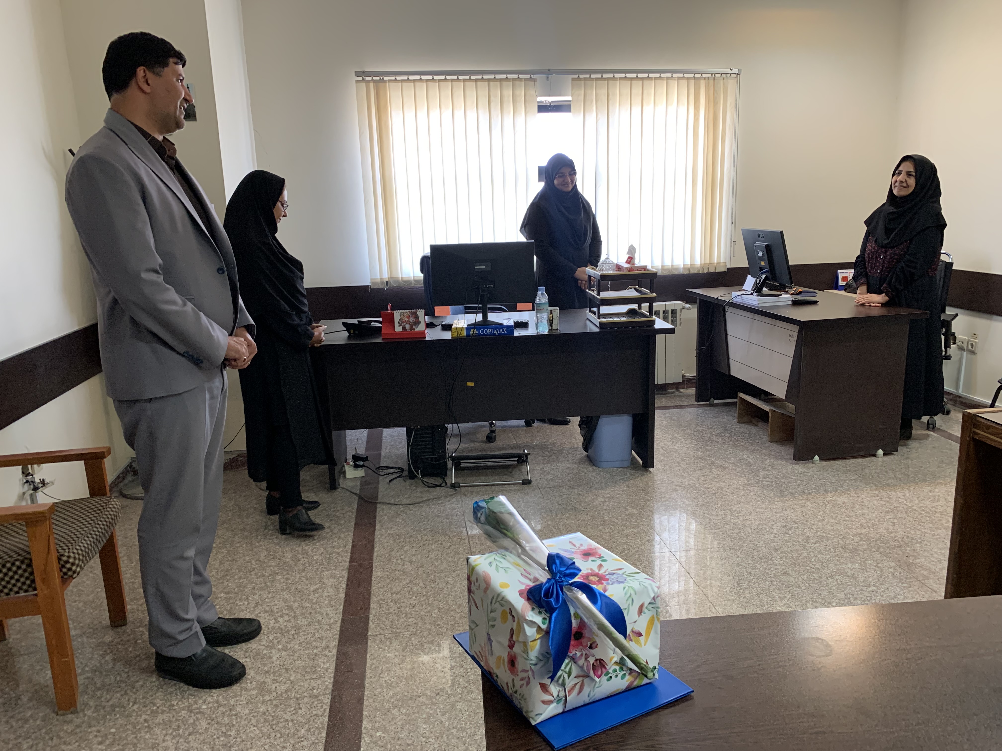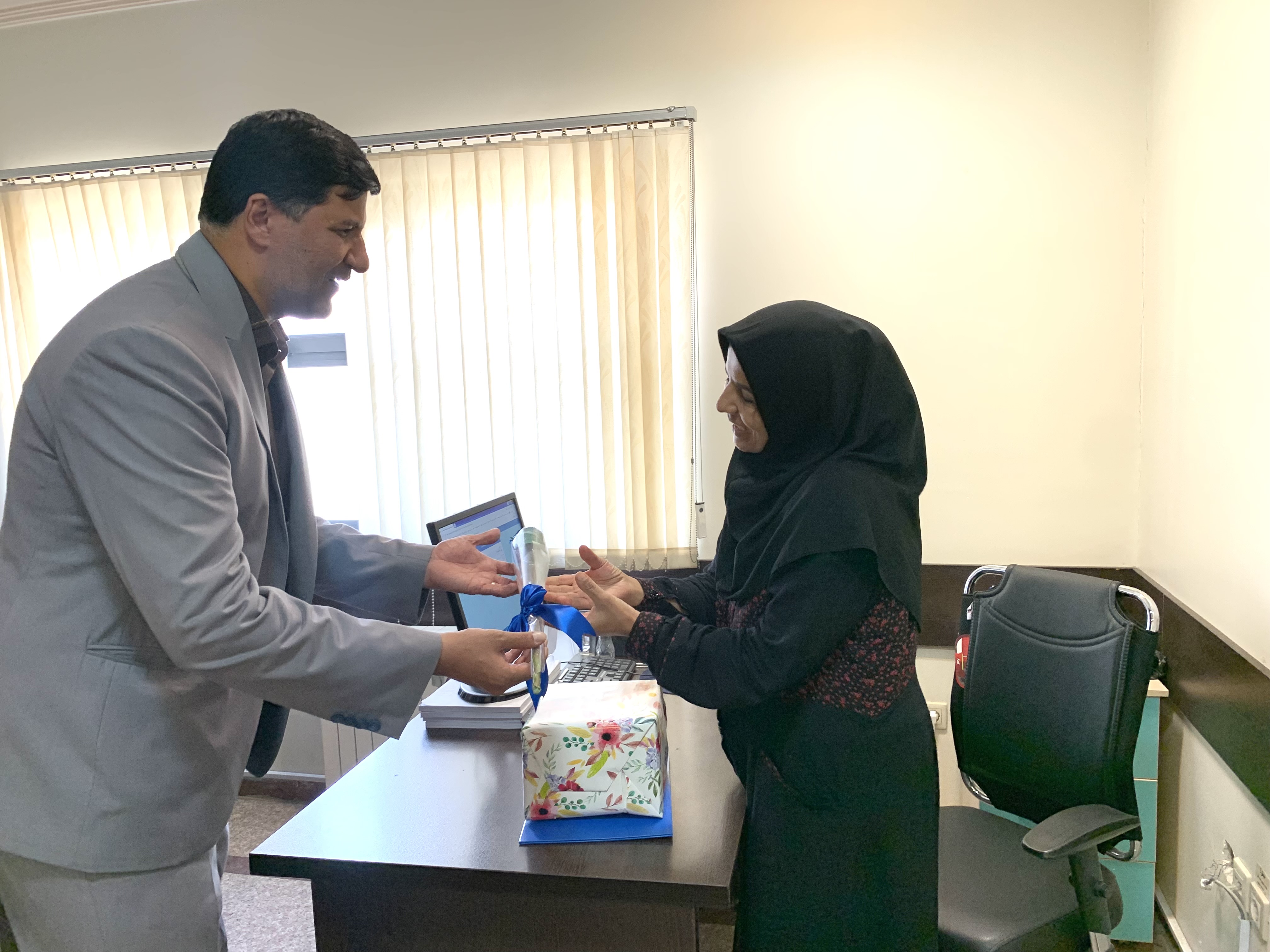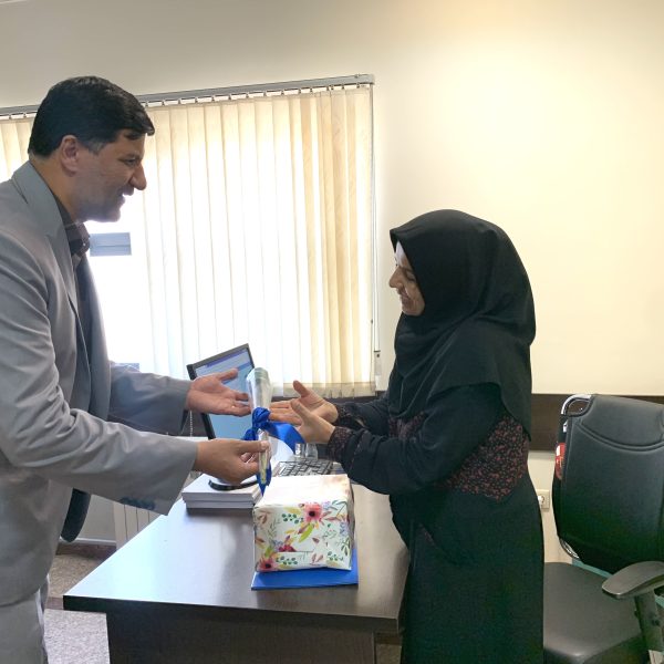 روح الله عرب مدیر مرکز و دکتر نسیم نمیرانیان معاون پژوهشی مرکز دیابت با دادن هدیه ای از زحمات چندین ساله همکار گرامی تقدیر و برای ایشان ارزوی سلامتی و تندرستی کردند.