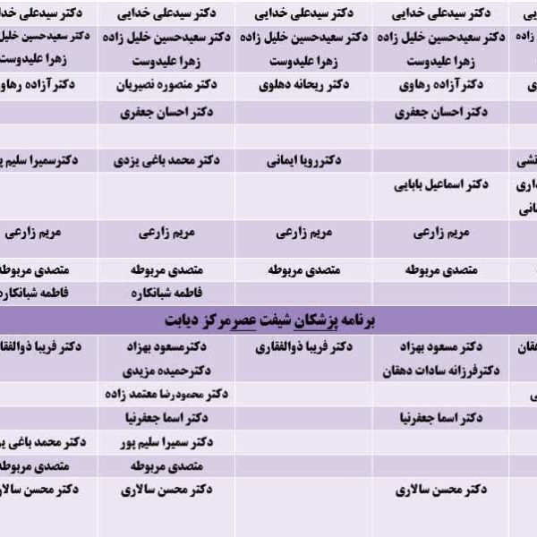 برنامه حضور پزشکان در مرکز تحقیقاتی درمانی دیابت یزد در شیفت صبح و عصر