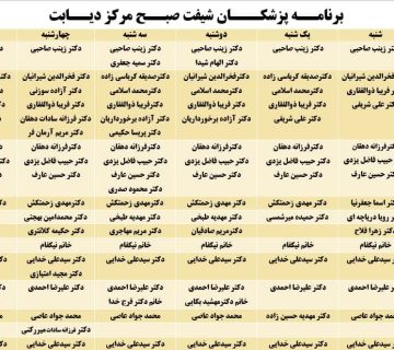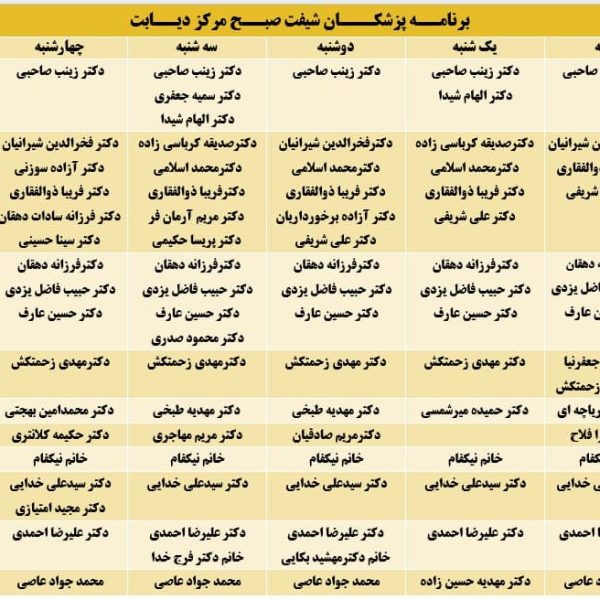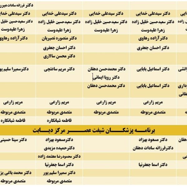 برنامه حضور پزشکان در مرکز تحقیقاتی درمانی دیابت یزد در شیفت صبح و عصر