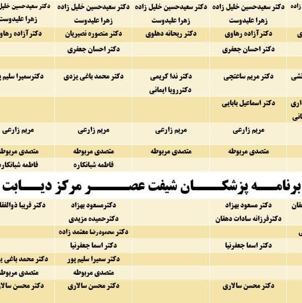 برنامه پزشکان تیرماه 1403روابط عمومی مرکز دیابت2 تیر 1403📌 برنامه حضور پزشکان در مرکز تحقیقاتی درمانی دیابت یزد در شیفت صبح ... اطلاعات بیشتر