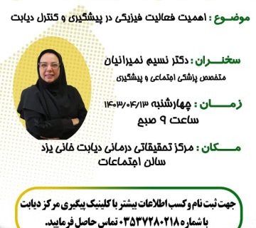 کلاس آموزشی اهمیت فعالیت فیزیکی در دیابت سخنران: دکتر نسیم نمیرانیان زمان: 13 ...