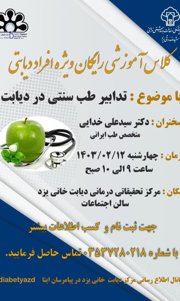 کلاس آموزشی رایگان ویژه افراد دیابتیروابط عمومی مرکز دیابت5 اردیبهشت 1403جهت ثبت نام در کلاس و همچنین کسب اطلاعات بیشتر با شماره 03537280218 ... اطلاعات بیشتر